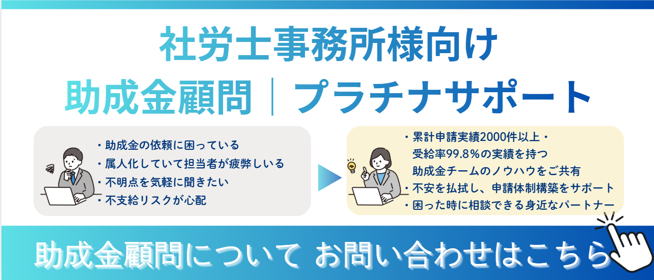 社会保険労務士法人大和T&Mでは、同業の社労士事務所様向けに、助成金業務のサポートプログラム「プラチナ・ナビゲート」をご提供いたします 。当法人の助成金チームが日々実践しているノウハウを共有し、貴事務所の確実な申請体制構築をバックアップ致します。
